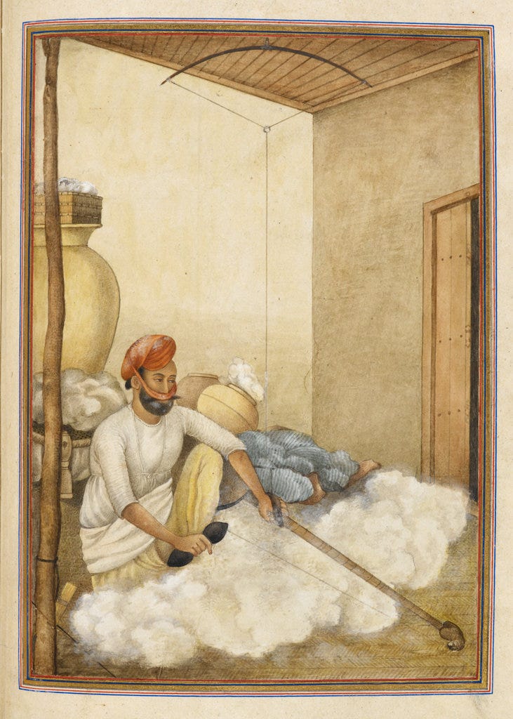 The amount of silver was easily absorbed at the village level where people were paid wages on a daily and monthly level. The country was highly monetised. Women and the household were active participants with caste and specialists engaged in cleaning, spinning, and weaving the fibre.